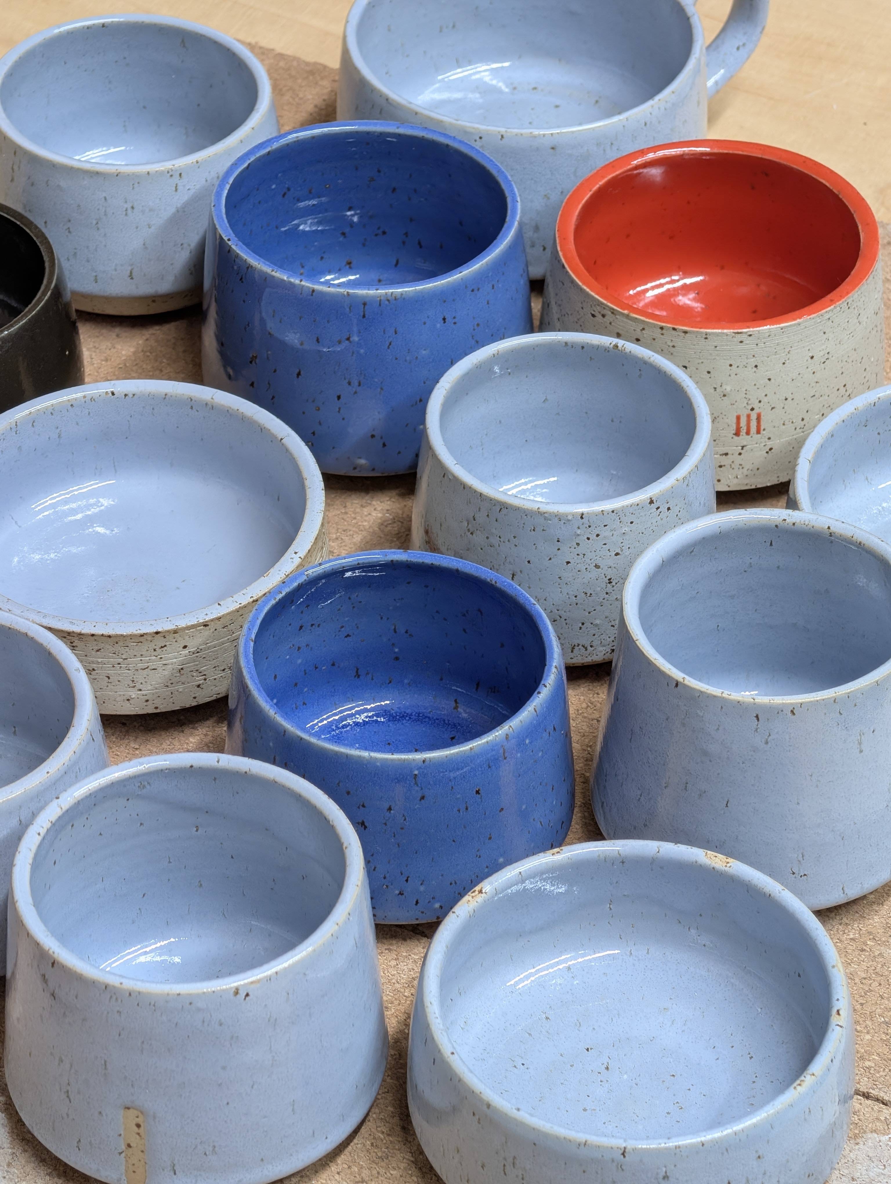 Hier mal wieder ein kleiner Test an Formen mit einer neuen Glasur, das wird wohl das nächste go2. Gerade auf dem gepunkteten Ton sieht es richtig interesannt aus.